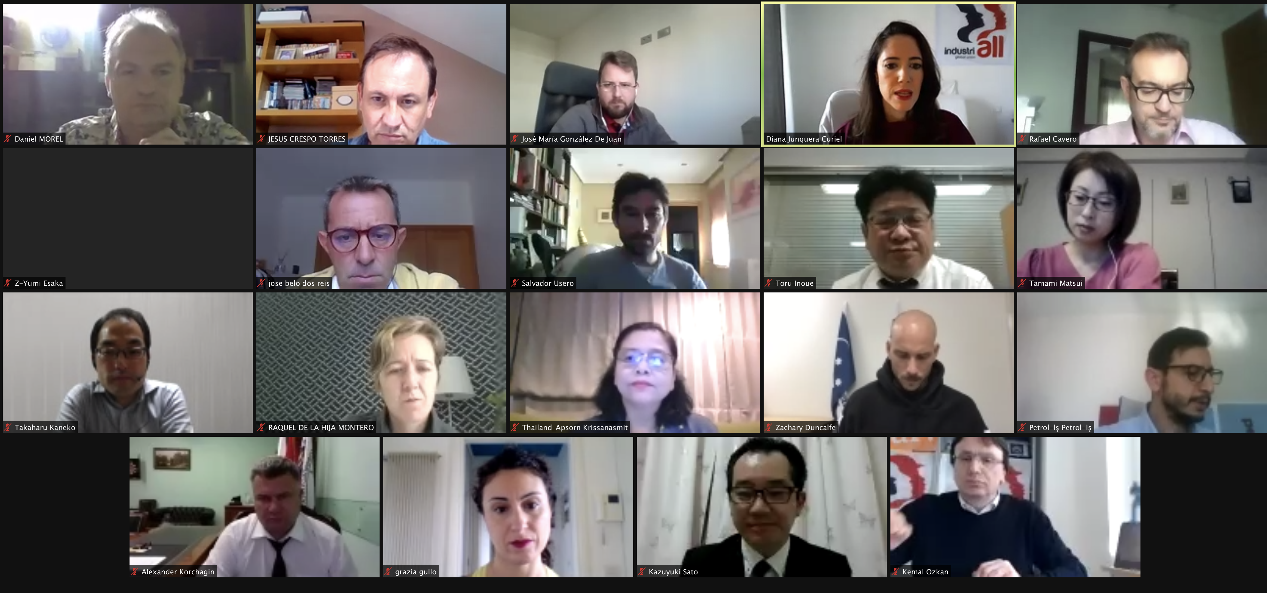 На встрече были заслушаны отчеты профсоюзов работников нефтегазовой промышленности из разных стран мира, в том числе из Алжира, Австралии, Бельгии, Италии, Японии, Норвегии, России, Испании, Таиланда, Турции и США. Делегаты подтвердили выявленные тенденции и рассказали о том, как они влияют на отрасль в их странах. Многие сыграли активную роль в защите рабочих мест и здоровья работников нефтегазовой промышленности, поскольку пандемия распространилась по всему миру.