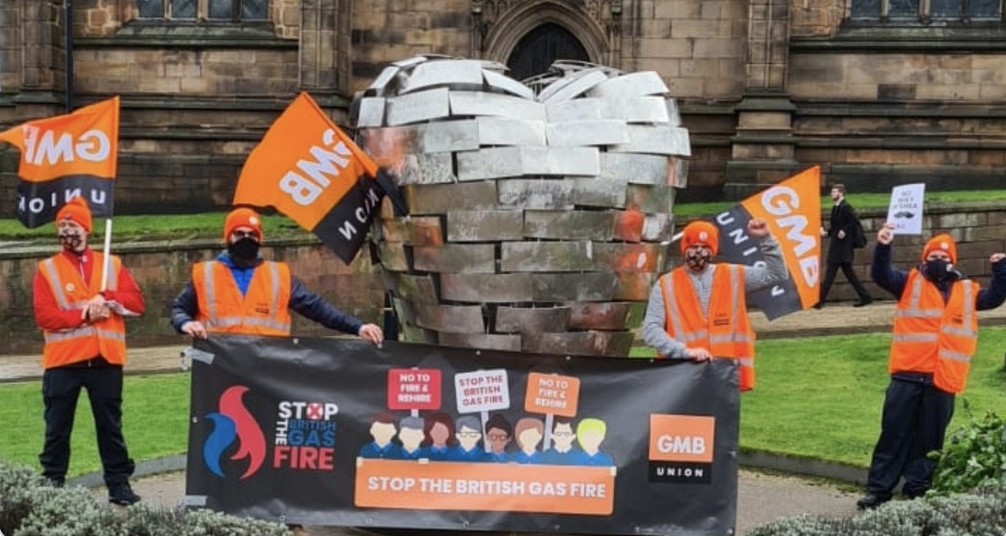 On 20 January, GMB members at British Gas launched the first of seven one-day strikes over the company’s strategy to fire them all and rehire them on worse terms and conditions. Around 7,000 workers downed tools across the UK, as cities across the country lit up with “Stop the British Gas Fire” messages of support.