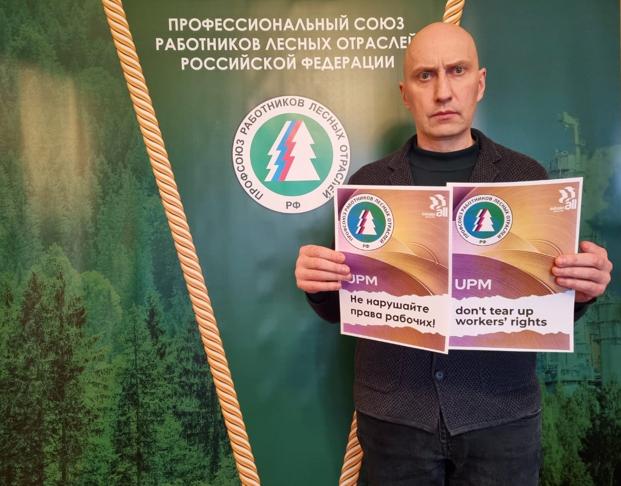 The president of the Timber and Related Industries Workers Union of Russia shows solidarity